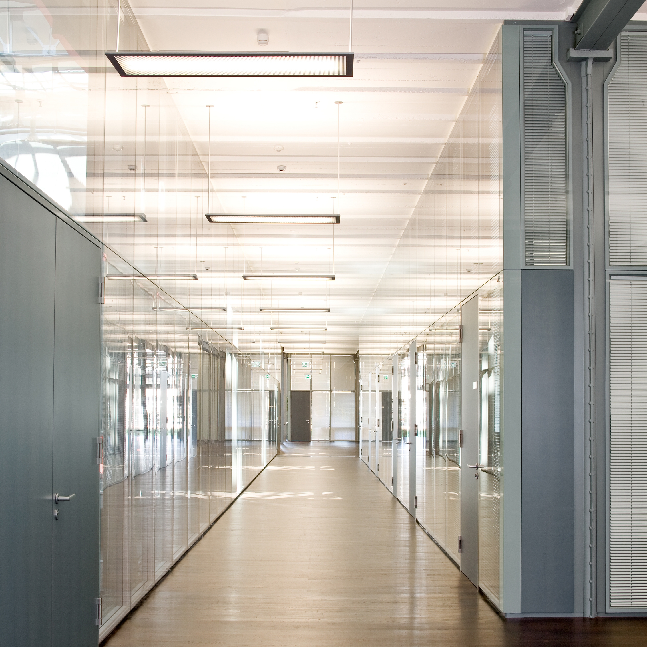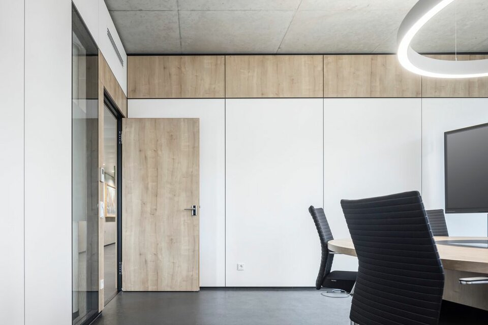 Las mamparas de vidrio de Lindner aportan luminosidad y sensación de amplitud: gracias a su construcción acristalada, permiten mantener la visibilidad entre espacios, optimizando la entrada de luz natural y favoreciendo un ambiente abierto y transparente.